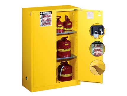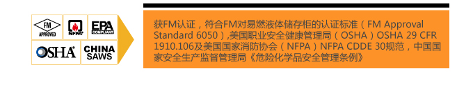 將危險液體存放在符合規(guī)定的柜中,可達到保護工人、減少火災隱患和提高生產力的目的。設計滿足美國OSHA 和NFPA 標準,Justrite 柜采用堅固的1mm 厚的焊接鋼板構成雙壁結構,形成38mm 的隔氣空間,有效地提高了耐火性。高性能、自鎖式柜門關閉方便、,在失火情況下可提供的保護。無故障的關門裝置保證三點聯(lián)動式不銹鋼插銷式閉鎖系統(tǒng)時間做出反應,而且每次都有效。