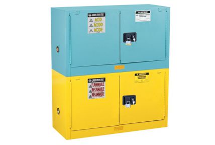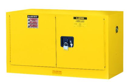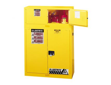 Justrite 背負式柜在不占用寶貴的地面空間前提下,擴大了易燃液體的存儲空間。設計安裝在Justrite 標準的114 升和170 升手動或自動關閉式柜的頂部,也可以單獨用作工作臺式柜或堆疊起來提供更多的存儲空間。也可以購買壁掛吊架組件,將背負式柜安裝在墻壁上。
